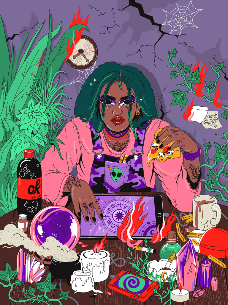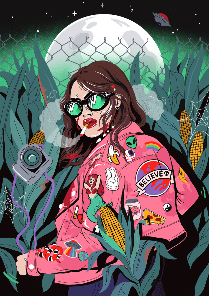 In her pieces, you can find the distractions that the privileged majority of the globe have a bit of a toxic relationship with, namely cigarettes, junk food, technology, prescriptions, soda, and the hope that there are other life forms out there that may help us stray from our everyday rat races.