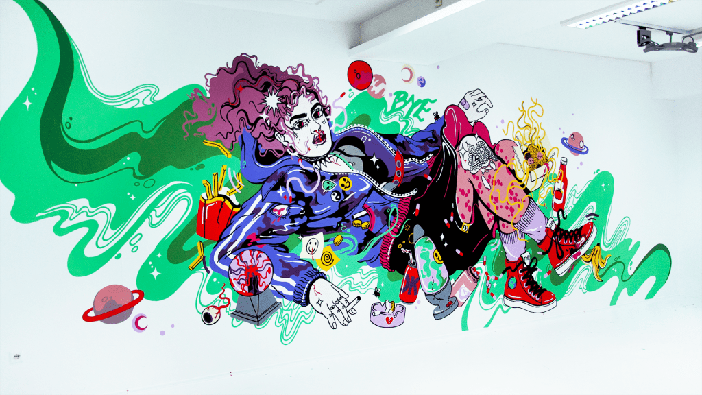 Liwacz featured some of her pieces at the Academy of Fine Arts in Katowice, Poland and painted the mural below in an exhibition entitled “We Are (Not) Alone.”