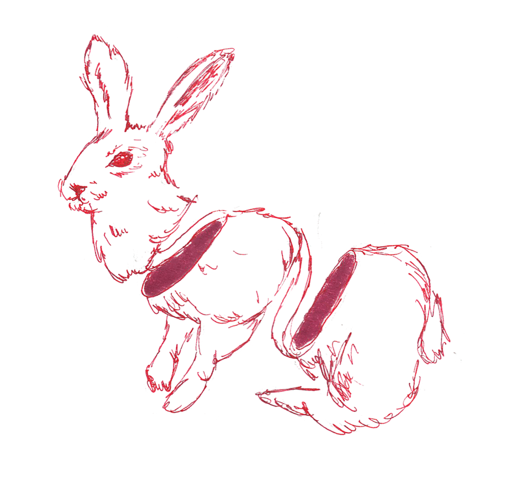 I noticed that throughout your work, there’s a recurring design of a little white bunny separated into three pieces. It’s so cool! What’s the significance of this little white, three-pieced bunny?